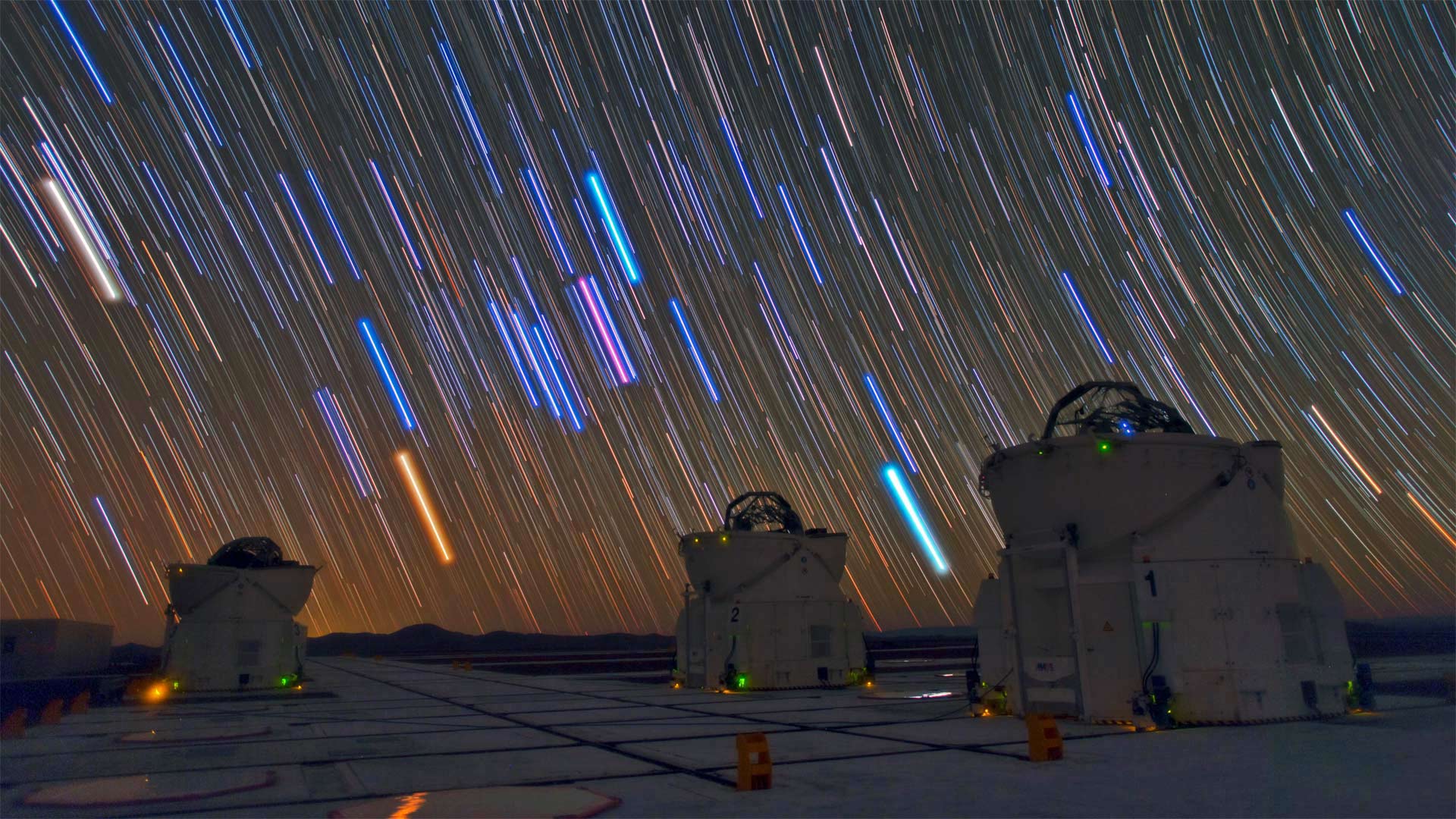 Telescopes and star trails at Paranal Observatory